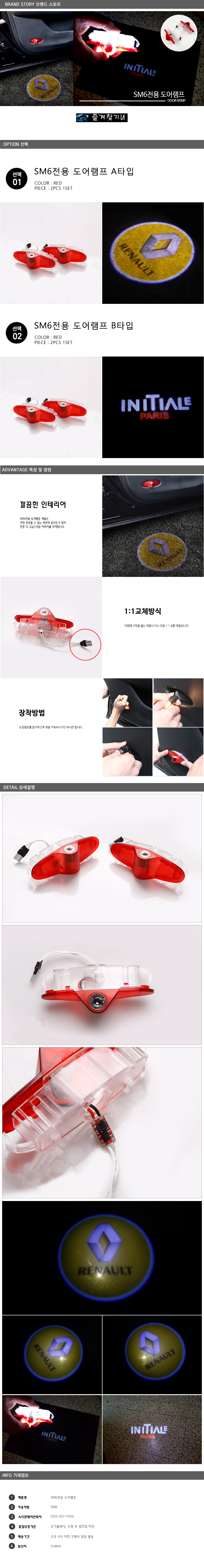 SM6 이니셜파리/르노로고 LED 도어램프 1:1교체타입