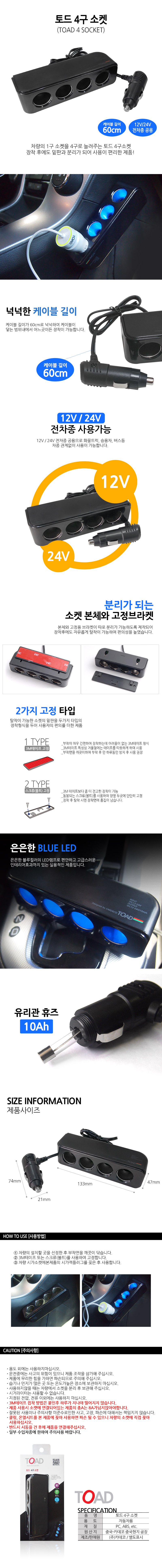차량의 1구 소켓을 4구로 늘려주는 토드 4구소켓
