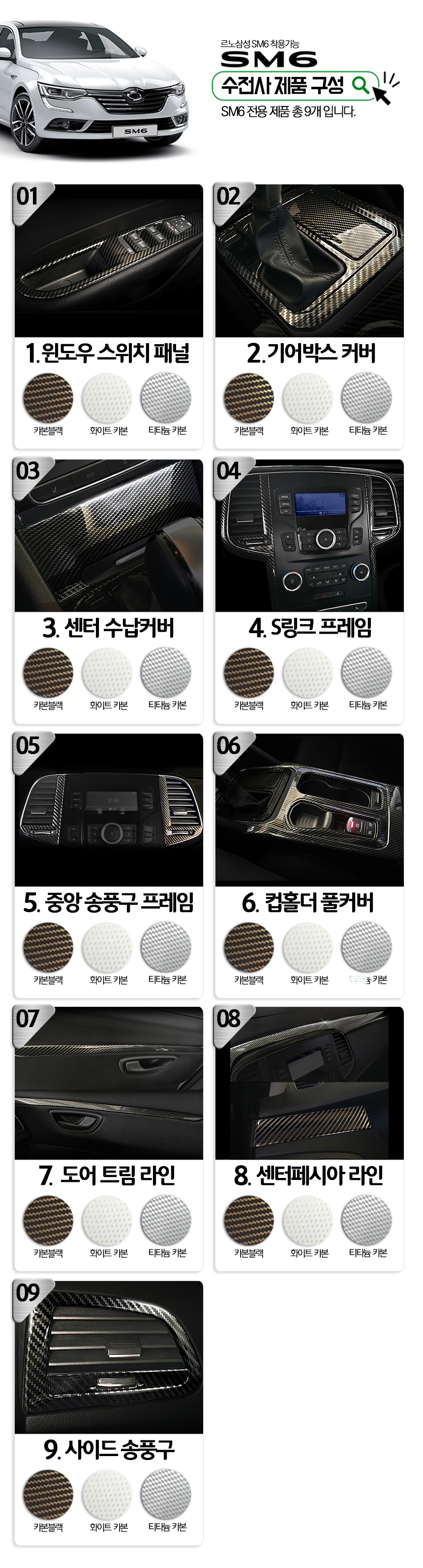 르노삼성 SM6 수전사 몰딩제품 모음전 S링크 프레임 자동차용품