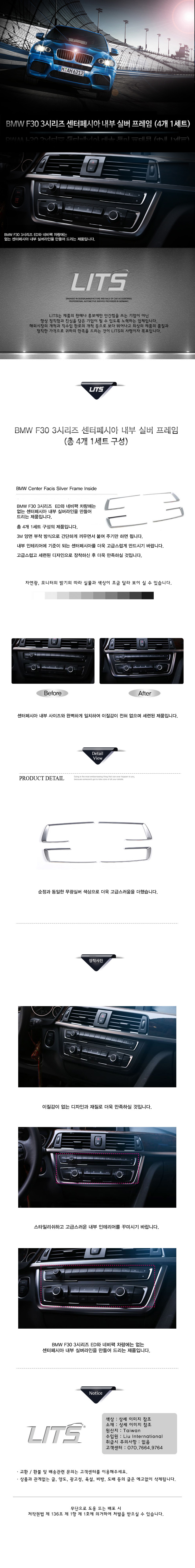 BMW 3시리즈 F30 센터페시아 내부 실버 프레임 (4개 1세트 구성)